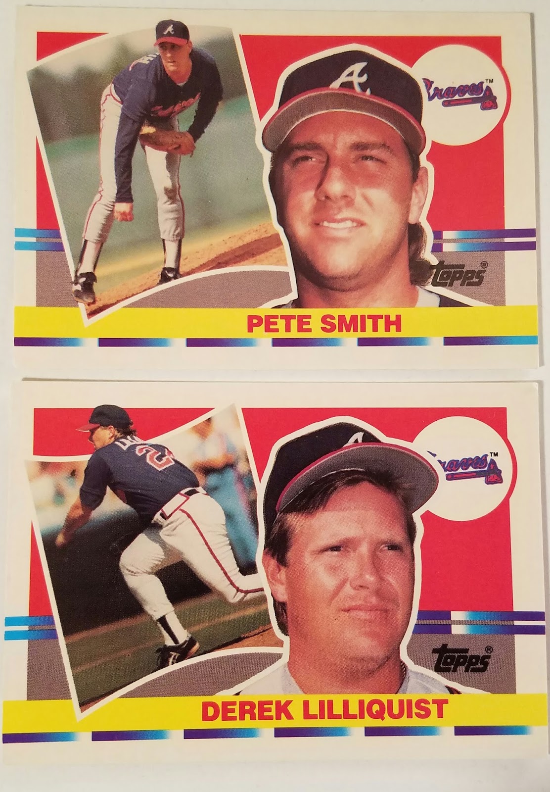 Speaking of gimmicky products, Matt also sent this pair of 1990 Topps Big cards. Again Topps is still up to these same tricks though under a different name and with larger cards that happen to be serial nuimbered. Things never change.
